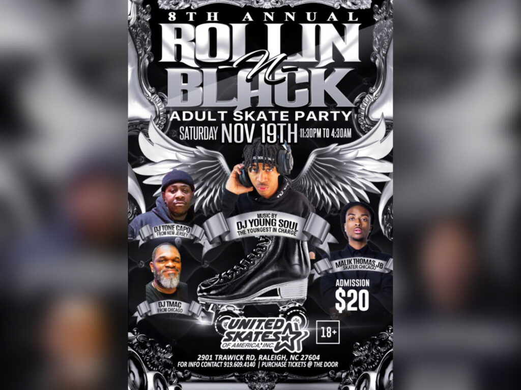 Don’t miss it on Nov. 19 at United Skates of America, 2901 Trawick Rd. Raleigh, NC 27604.