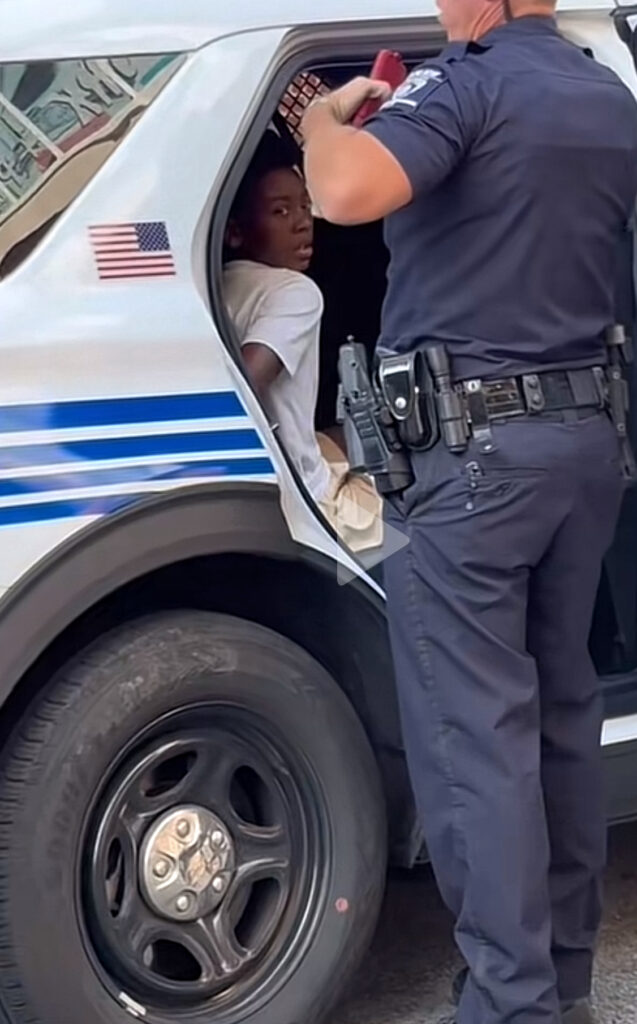 In a second video, another bystander could be seen defending the boy, engaging with one of the officers who admitted on camera that the child was being arrested for reckless driving on a bicycle.