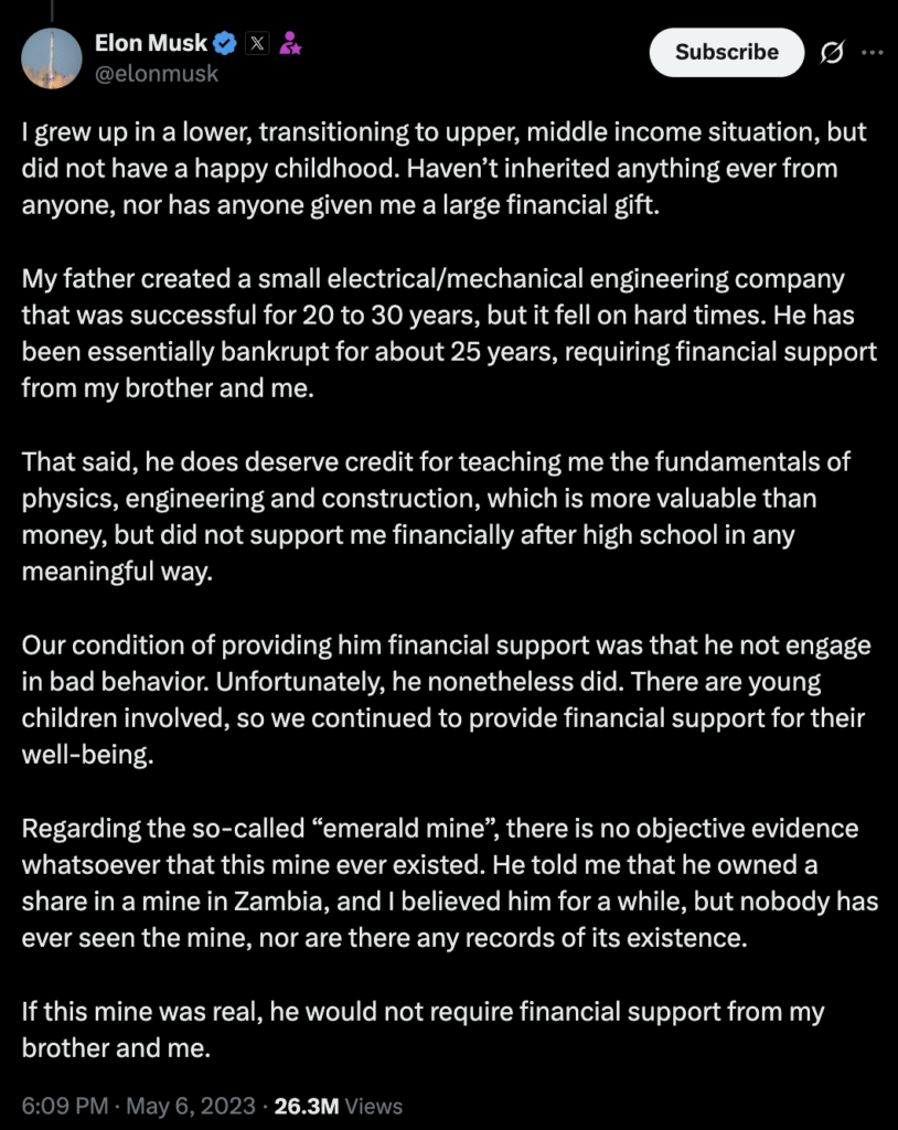 While Elon Musk hasn’t commented on the current accusations, past statements reveal deep-rooted tension with his father. A resurfaced 2023 tweet reveals that Elon and his brother financially supported their father, Errol.