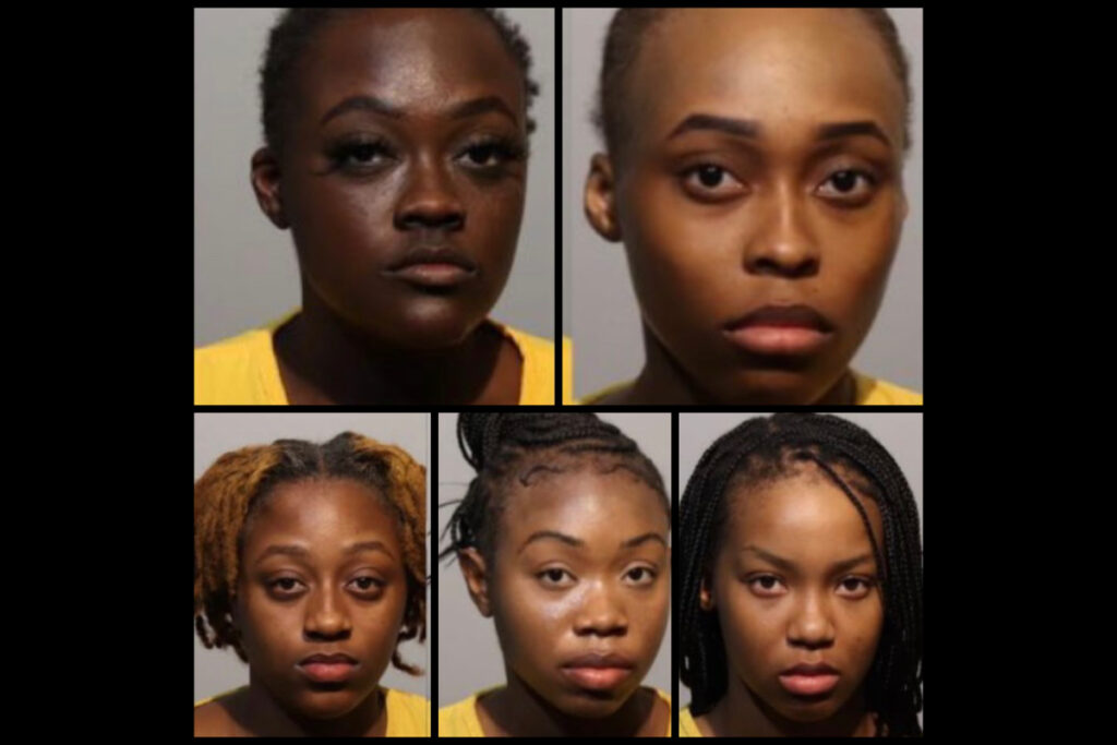 The suspects have been identified as 19-year-old Tyesha Charles, 18-year-old Kenisha Charles, 24-year-old Keiyanda Charles, 25-year-old Jasmine Cline, and 20-year-old Jahleigha Smith.