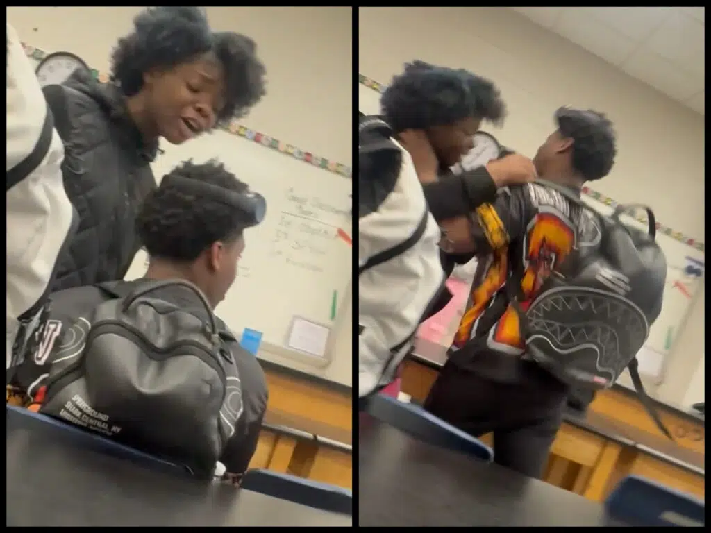 The new classroom video, submitted to The North Carolina Beat by a student witness, begins with the female student in pink pants standing at the male student’s desk, speaking to him in what sounded like a warning not to touch her.
