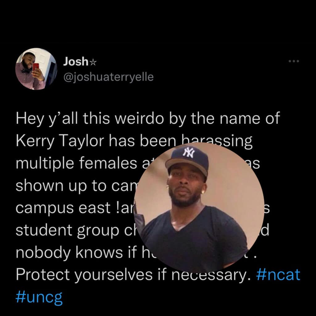 Two students at A&T in Greensboro NC post on Twitter that a 32-year-old man been harassing girls on campus