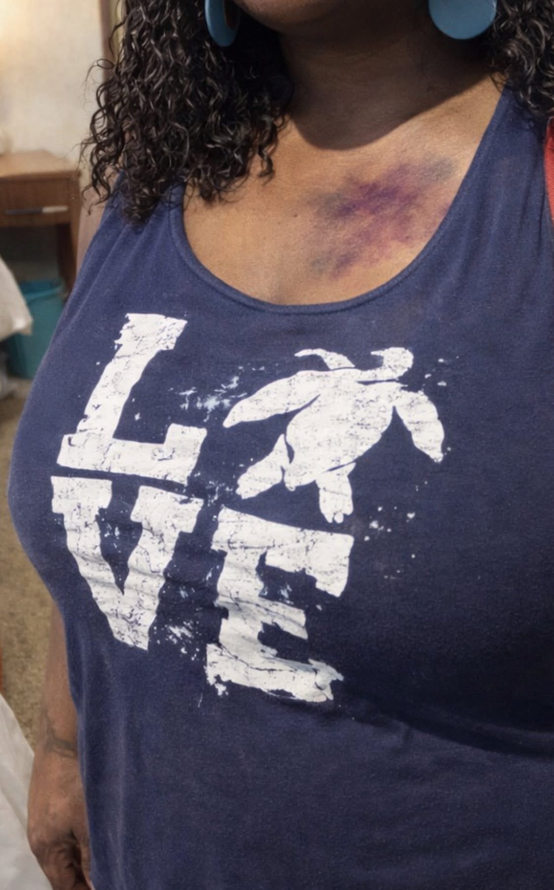 She also claims her cellphone was taken during the incident and has not been returned.