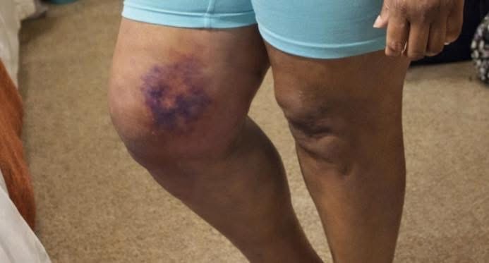 Cunningham-Quick alleges the officer kicked her injured leg twice, slammed her head against her car, and that she lost consciousness and experienced what she described as a seizure — something she says she had never experienced before.