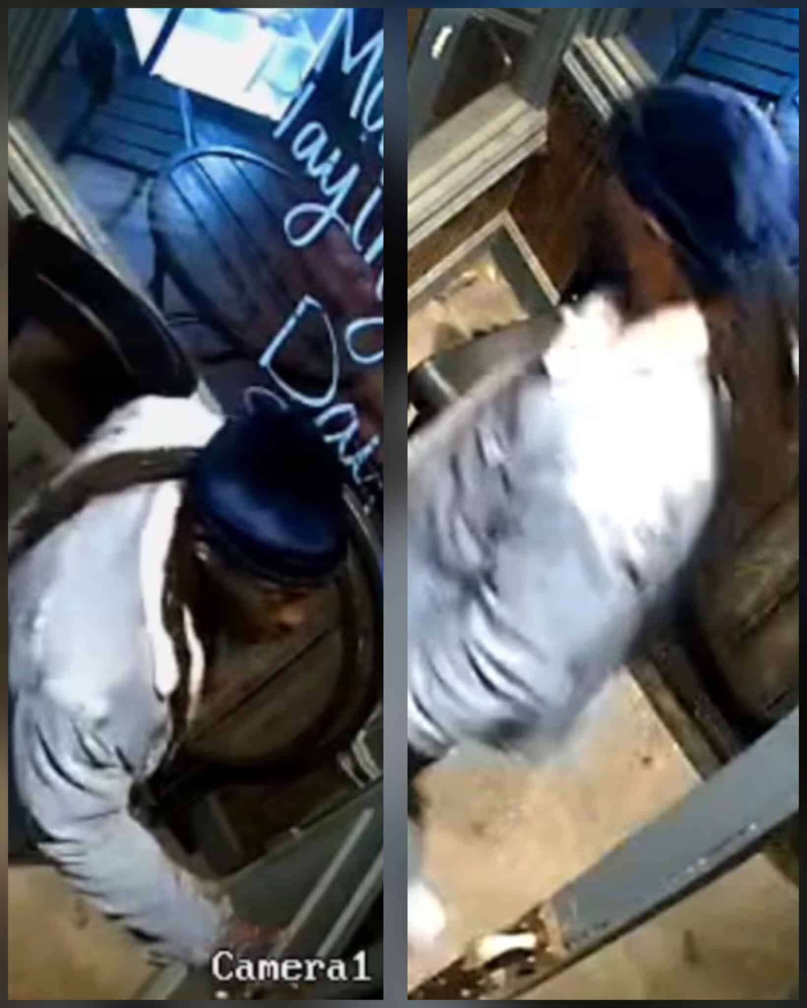 He was also wearing what police said appeared to be a dark blue head covering, with long hair extending from underneath.