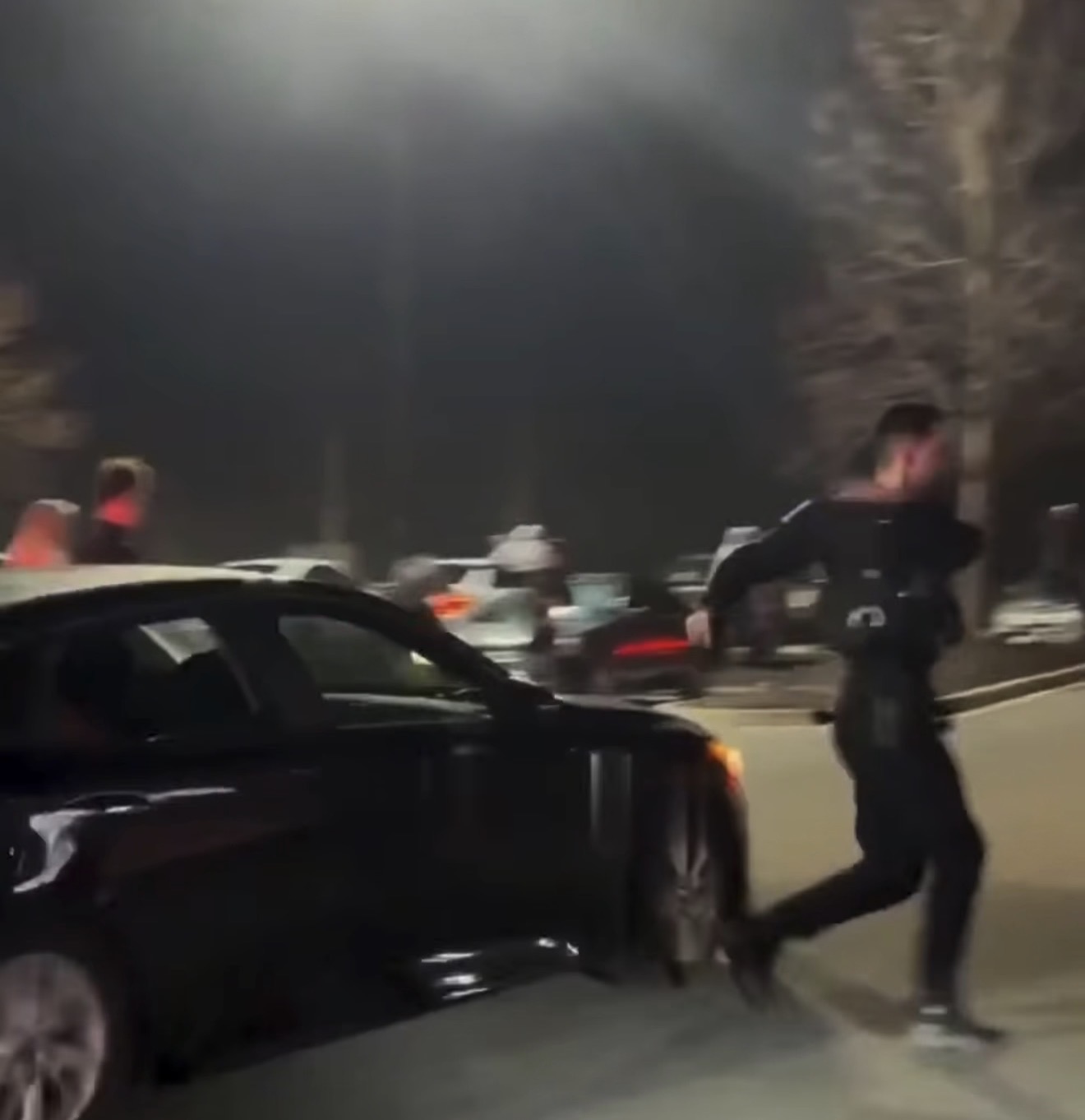 When officers arrived on scene, they reportedly found several vehicles in the lot participating in reckless driving activity and began trying to clear the area.